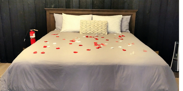 This room features a claw foot tub, King bed and separate living room/kitchen area.